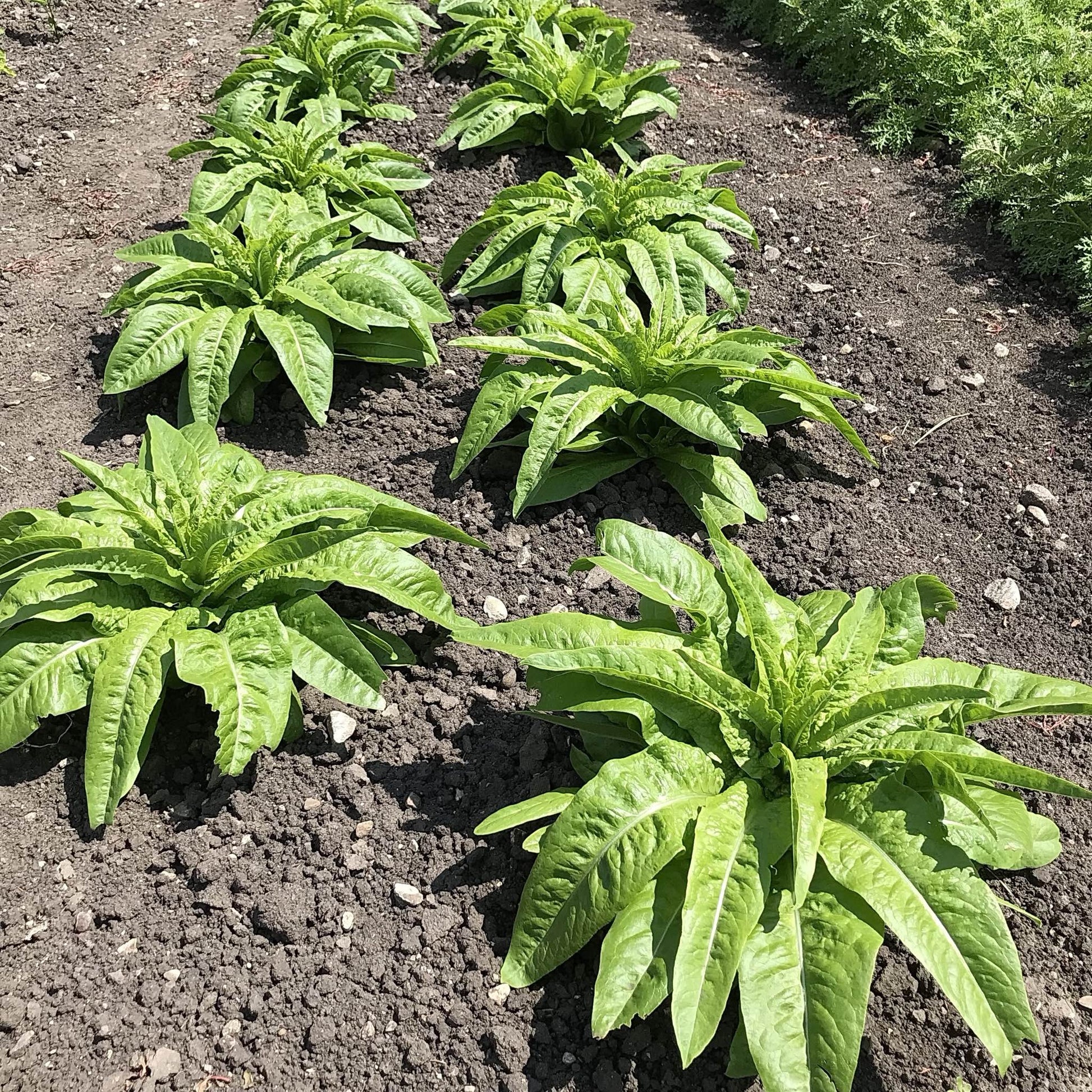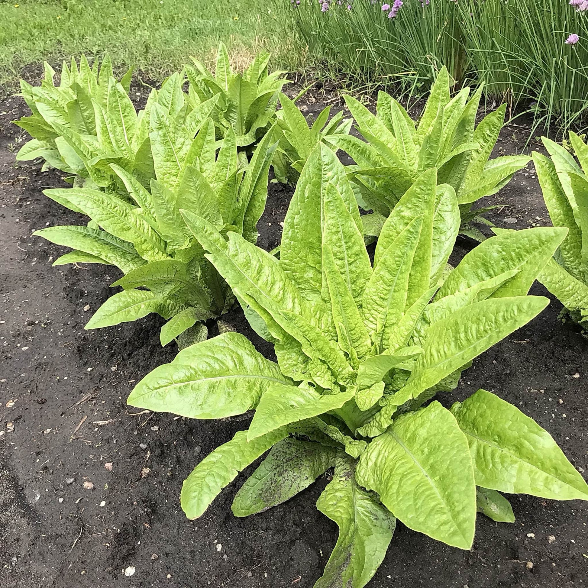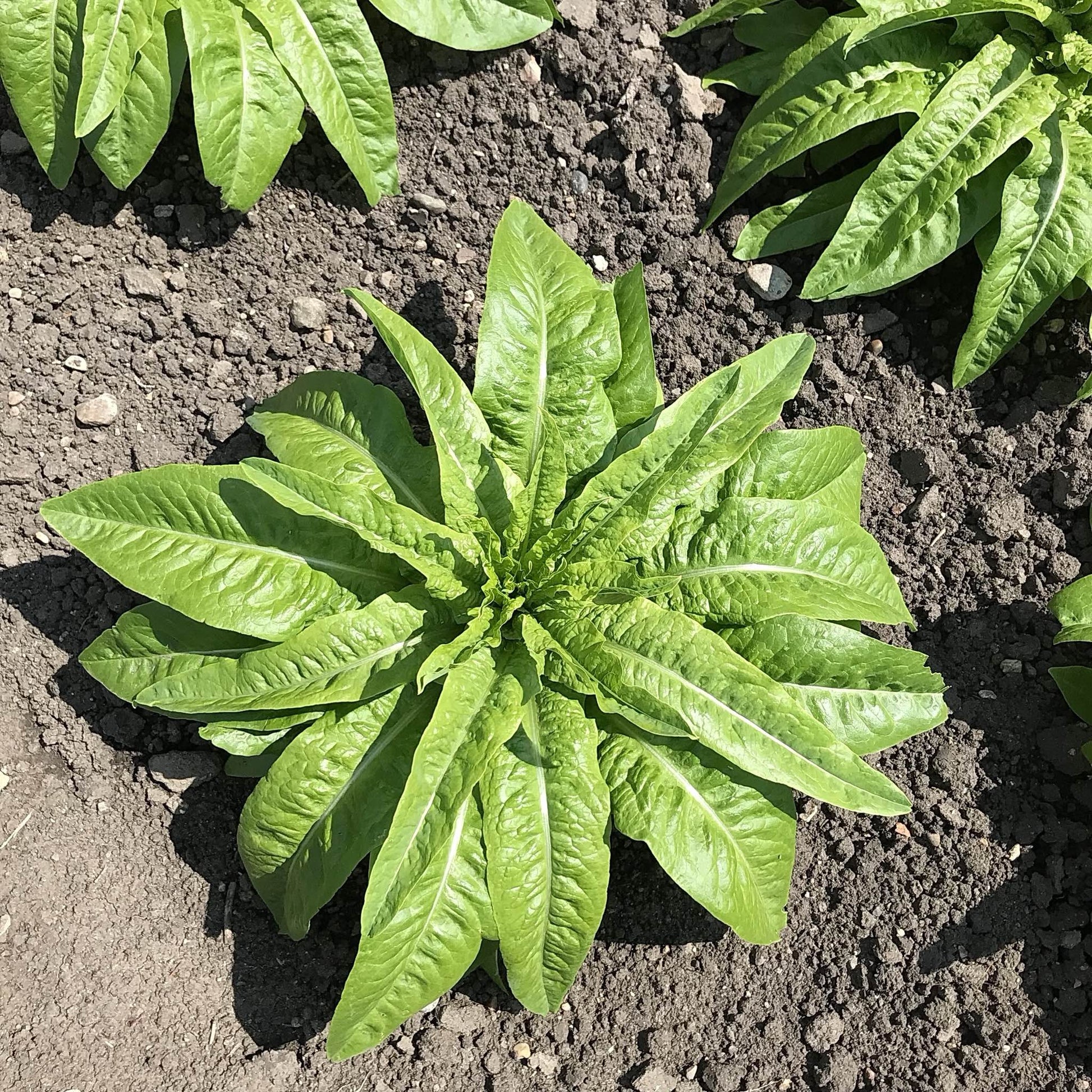 Strela Green is a medieval heirloom that makes a large starburst rosette of long, crisp, sweet pointy leaves. Heat tolerant and super delicious. Doesn't seem to get bitter with lack of moisture. It matures into a large open head fairly quickly, and works great for a cut-and-come-again harvest if you take just the outside leaves.